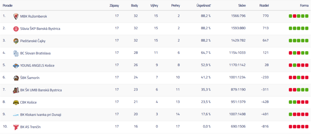 Tabuľka po 17. kole: